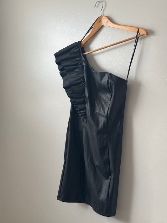 Faux Leather One Shoulder Dress SIZE XSMALL